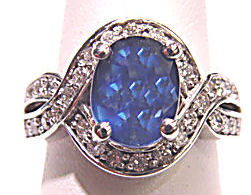 4RFIPG2-1 Oval Shaped Blue Sapphire set in "Criss Cross" Diamond Mounting