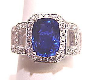 4RMCCJ1-1 Cushion Shaped Ceylon Blue Sapphire Set in Diamond Mounting