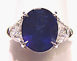 4RPRCA3-1 Blue Sapphire set in Diamond Mouting with Half Moon shapes