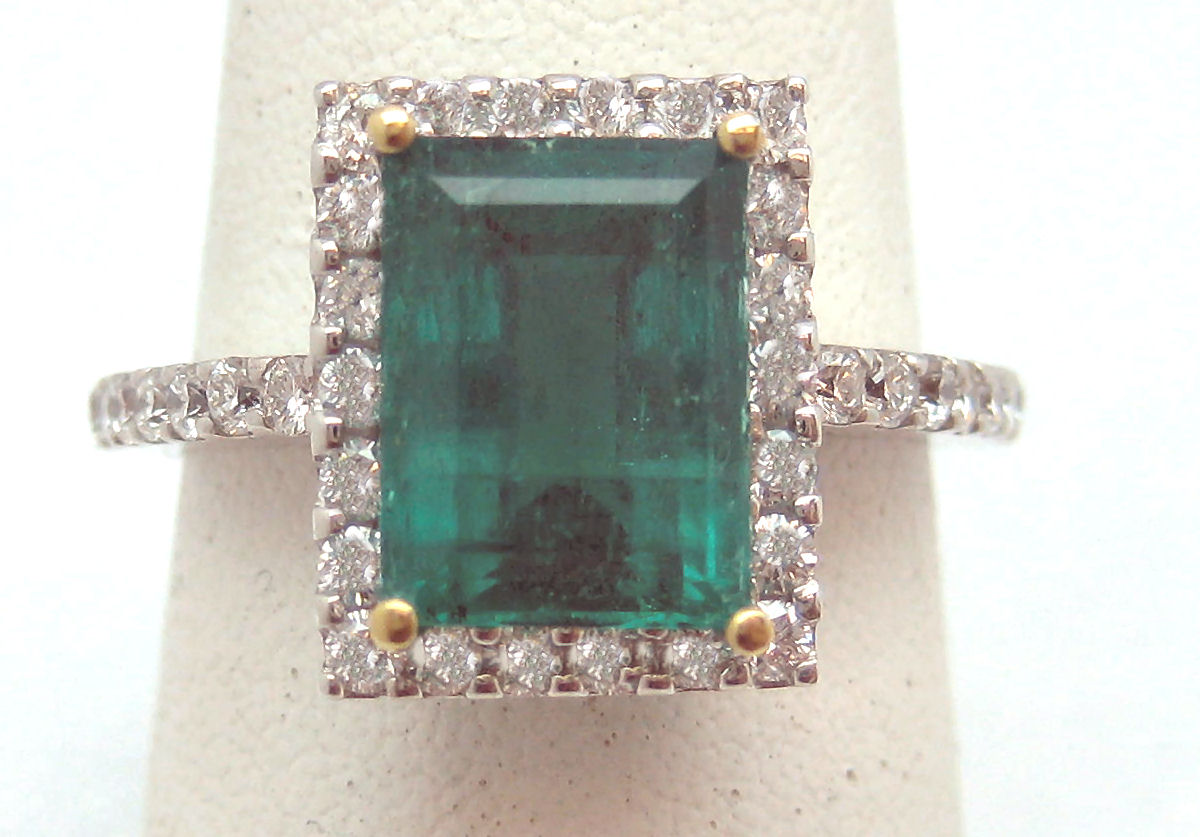 4RST496-1 Colombian Green Emerald set in Diamond Emerald Cut Setting