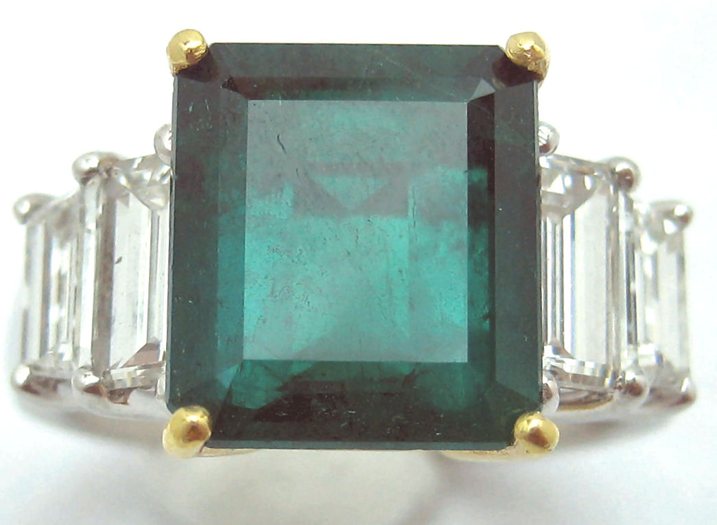 4RMCCA14-1 Colombian Green Emerald, Rectangle Cut. Set in Emerald Cut Diamond Mounting